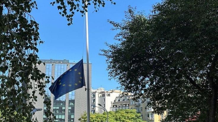 نُكِّسَت الأعلام في جميع مؤسسات الاتحاد الأوروبي حدادًا على الضحايا المدنيين الذين سقطوا في الهجمات الروسية الأخيرة على أوكرانيا