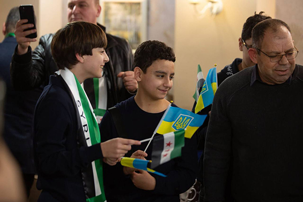 افتتح الحفل بعزف النشيدين الوطنيين الأوكراني والسوري وقراءة الفاتحة على أرواح الشهداء الطاهرة الذين عبدوا طريق الثورة بدمائهم لينال الشعب السوري حريته وكرامته.