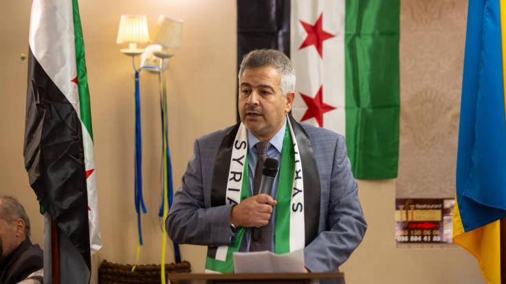 كما وتقدم د. محمد فرج الله ممثلًا عن المجلس العربي في أوكرانيا وأوكرانيا بالعربية لرئيس الجالية السورية الأخ محمد زيدية بخالص التهاني وأصدق مشاعر الفرح بعيد النصر العظيم الذي ضحى من أجله الشعب السوري بالغالي والنفيس وقدم لأجله قوافل من الشهداء الذين صعدت أرواحهم الزكيّة لخالقها في خضم الحرب الظالمة والغير متكافئة والتي شنها المجرم بشار الأسد على الشعب السوري مستعينا المجرم الروسي والمجرم الإيراني.