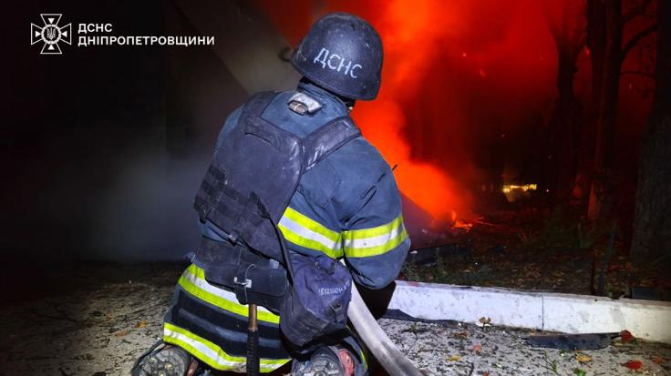 وذكرت الهيئة أن طائرة مسيرة من طراز FPV أصابت مبنى سكنيًا في إحدى بلدات منطقة دنيبروبيتروفسك، ما أدى إلى إصابة شاب يبلغ من العمر 19 عامًا. وأشارت التقارير إلى أن الانفجار تسبب في اندلاع حرائق في بلدات بافلوهراد وكاميانسكي وسلافغورود، حيث عملت فرق الإنقاذ على إخماد النيران رغم استمرار التهديد بالقصف المتكرر.