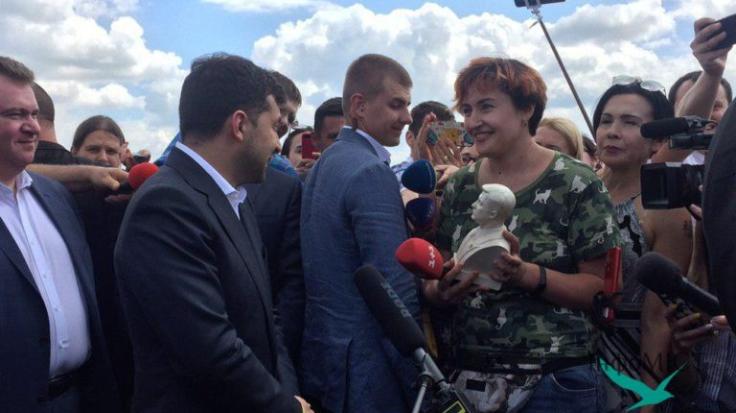 رفض الرئيس الأوكراني فولوديمير زيلينسكي قبول هدية قدمتها له صحافية تعمل في قناة "1+1" التلفزيونية الأوكرانية خلال زيارته إلى مطار مدينة تشيركاسي. كييف/ أوكرانيا بالعربية/ رفض الرئيس الأوكراني فولوديمير زيلينسكي قبول هدية قدمتها له صحافية تعمل في قناة "1+1" التلفزيونية الأوكرانية خلال زيارته إلى مطار مدينة تشيركاسي الأربعاء 31 تموز/ يوليو الماضي.