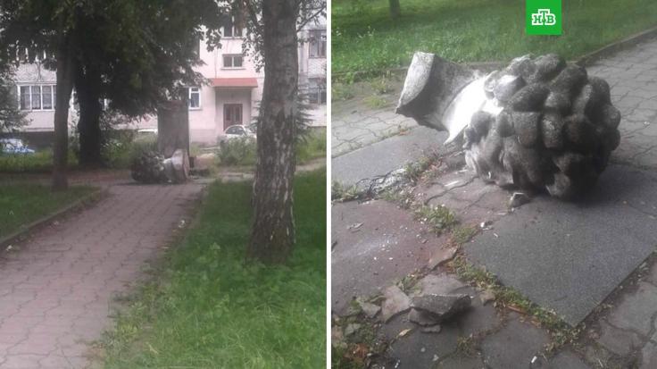أوكرانيا بالعربية | مخرّبون يحطّمون تمثال الشاعر الروسي "ألكسندر بوشكين" في مدينة زولوتشيف غربي أوكرانيا