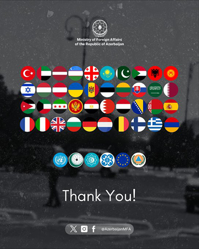 وجاء في البيان: "نعرب عن خالص امتناننا لبيانات الدعم والرسائل والمكالمات الهاتفية التي تلقيناها من شركائنا الدوليين عقب هجمات الطائرات المسيرة الإيرانية على أراضي جمهورية أذربيجان. ونُثمن عالياً التضامن الذي أُبدي تجاه أذربيجان والتأكيد الواضح على وحدة أراضينا وسيادتنا. ونشكر جميع الدول والمنظمات الدولية التي ساندت أذربيجان في هذا الوقت، ونُقدر دعمها وتفاعلها المستمر".