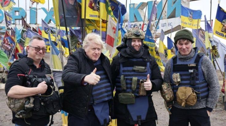كييف/ أوكرانيا بالعربية/ زار رئيس الوزراء البريطاني الأسبق بوريس جونسون الجبهة الأوكرانية للمرة الأولى، حيث أمضى يومين في منطقة زاباروجيا مع مقاتلي اللواء 65، واطلع على ظروف عمل ومعيشة الجنود الأوكرانيين وتنفيذهم للمهام القتالية يومياً.