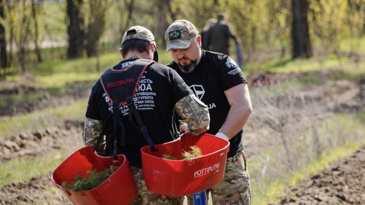 وقال أحد موظفي الغابات: "نغرس اليوم 1.4 هكتار". ودُعي محاربون قدامى، بينهم إيهور ليجيزا الذي ترك منصبه كمختار قرية عام 2024 ليعمل مسعفاً ميدانياً في زاباروجيا وفولشانسكي قبل أن يصاب بجروح خطيرة، وأولكسندر (المُلقب بـ"فبراير") الذي فقد ساقه في اتجاه دونيتسك، للمشاركة في زراعة أشجار الصنوبر.