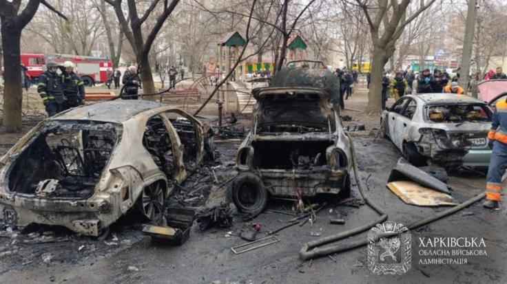 في خاركيف، استهدفت طائرتان مسيرتان منطقة خولودنوهيرسكي ظهراً، مما أدى لإصابة سيدتين (66 و70 عاماً) ونقل إحداهما إلى المستشفى في حالة خطيرة، مع تدمير عدة سيارات متوقفة وتضرر مبنى سكني. وفي حي نوفوبافارسكي، أصيب خمسة أشخاص بينهم رجل (71 عاماً) وامرأة (58 عاماً) بحالة متوسطة، مع أضرار في المباني السكنية واندلاع حريق.