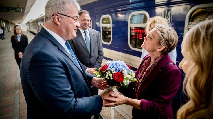 وكتب سيبيها على مواقع التواصل الاجتماعي: "هذا الصباح، برفقة مدير مكتب الرئيس السيد أندري يرماك، سررتُ بلقاء وزيرة الخارجية البريطانية إيفيت كوبر، في محطة قطار كييف في أول زيارة لها كوزيرة للخارجية.