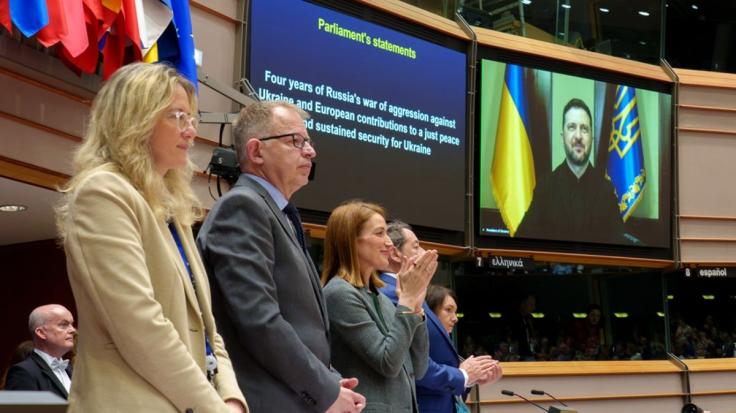 أما في البرلمان الأوروبي، فقد خاطب الرئيس الأوكراني فولوديمير زيلينسكي النواب عبر الفيديو، داعياً إلى الحفاظ على الوحدة والقوة ذاتها التي كانت في بداية الغزو: "لم يتضاءل الخطر. نعم، نحن نردع روسيا، لكننا لم نضمن الأمن بعد. ولن نتمكن من تحقيق ذلك إلا بالعمل معاً في أوروبا، مع أمريكا".