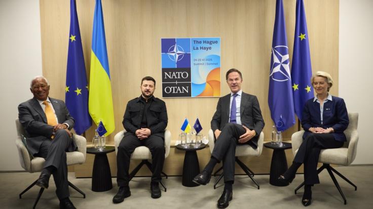 كييف/ أوكرانيا بالعربية/عقد الرئيس الأوكراني فولوديمير زيلينسكي في 24 حزيران/ يونيو اجتماعًا مع رئيس المجلس الأوروبي أنطونيو كوستا، ورئيسة المفوضية الأوروبية أورسولا فون دير لاين، والأمين العام لحلف شمال الأطلسي مارك روته لتنسيق الجهود بين الاتحاد الأوروبي وحلف شمال الأطلسي.