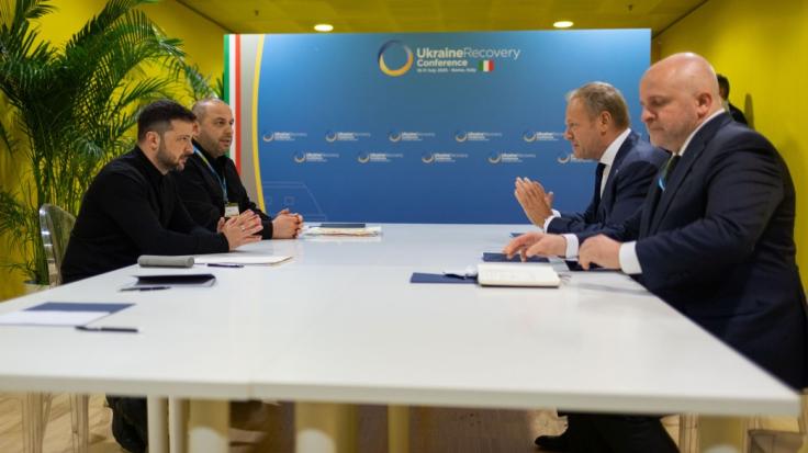 شكر زيلينسكي بولندا على دعمها الدفاعي وشكر دونالد توسك على مشاركته في مؤتمر إعادة إعمار أوكرانيا. وفي سياق منفصل، أشار الرئيس إلى أن بولندا، إلى جانب المفوضية الأوروبية وبنك الاستثمار الأوروبي وفرنسا وألمانيا وإيطاليا، انضمت إلى الصندوق الأوروبي الرائد لإعادة إعمار أوكرانيا الذي أُنشئ حديثًا، وهذا سيسمح بجذب استثمارات كبيرة للمساعدة في إعادة إعمار البلاد.