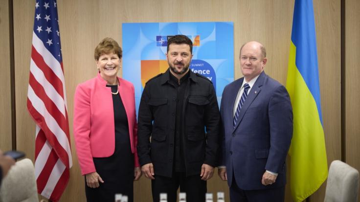 رئيس أوكرانيا يلتقي عضوي مجلس الشيوخ الأمريكي جين شاهين وكريس كونز