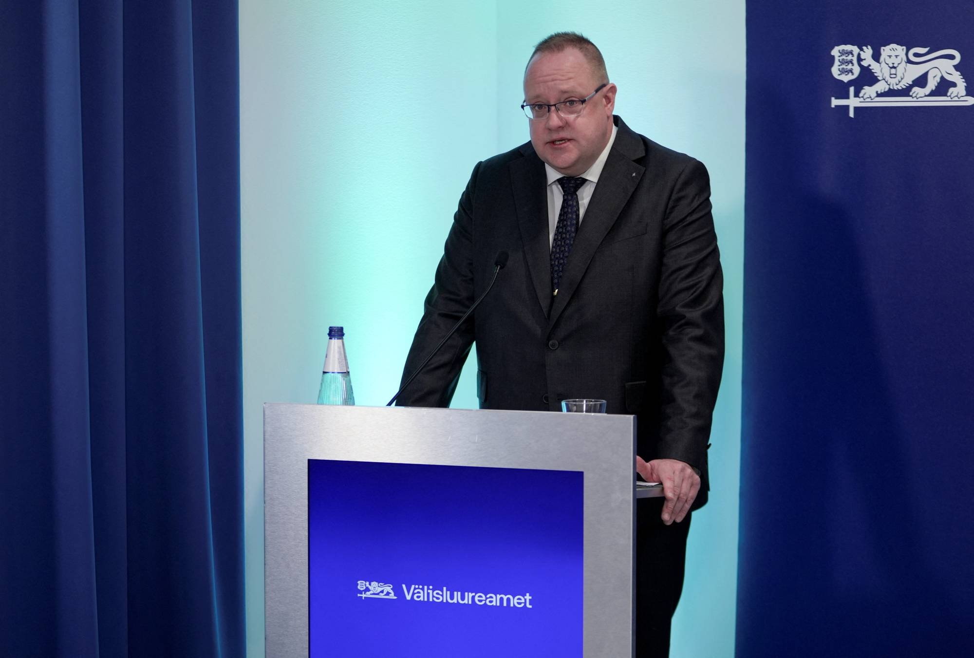 رئيس جهاز الاستخبارات الخارجية الإستوني كاوبو روسين خلال مؤتمر صحافي في تالين... إستونيا