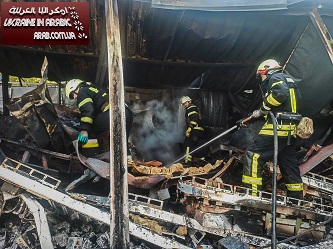 وبحسب هيئة الطوارئ الحكومية، شارك 45 رجل إنقاذ و13 قطعة من المعدات وقطارات الإطفاء في إزالة آثار الهجوم المعادي.