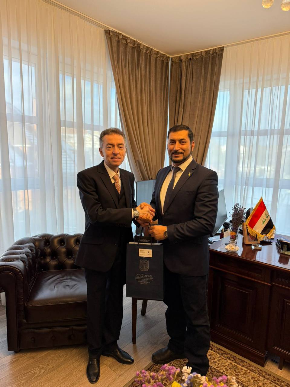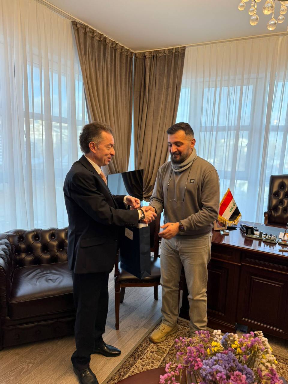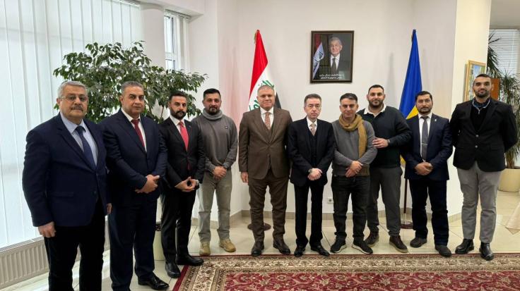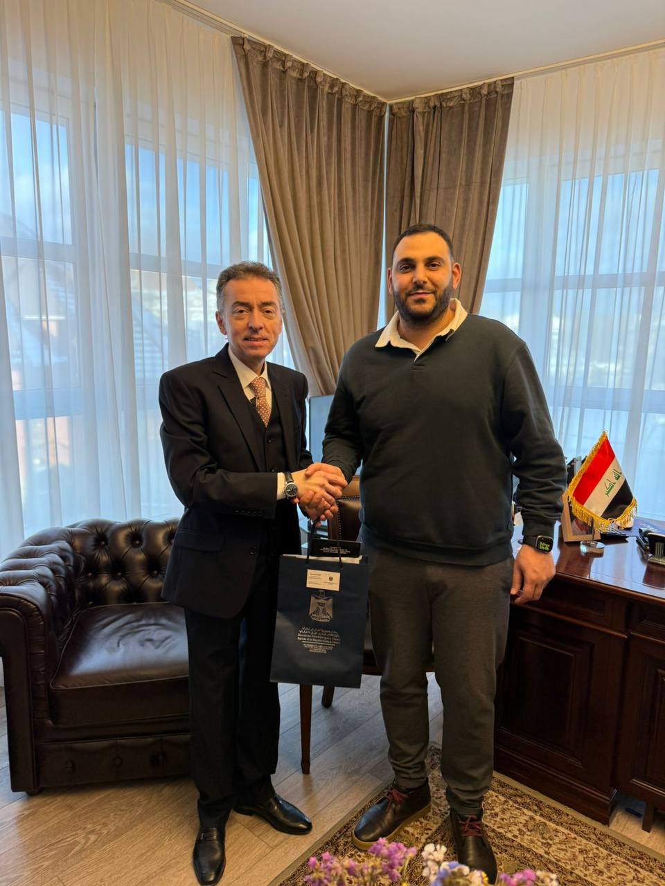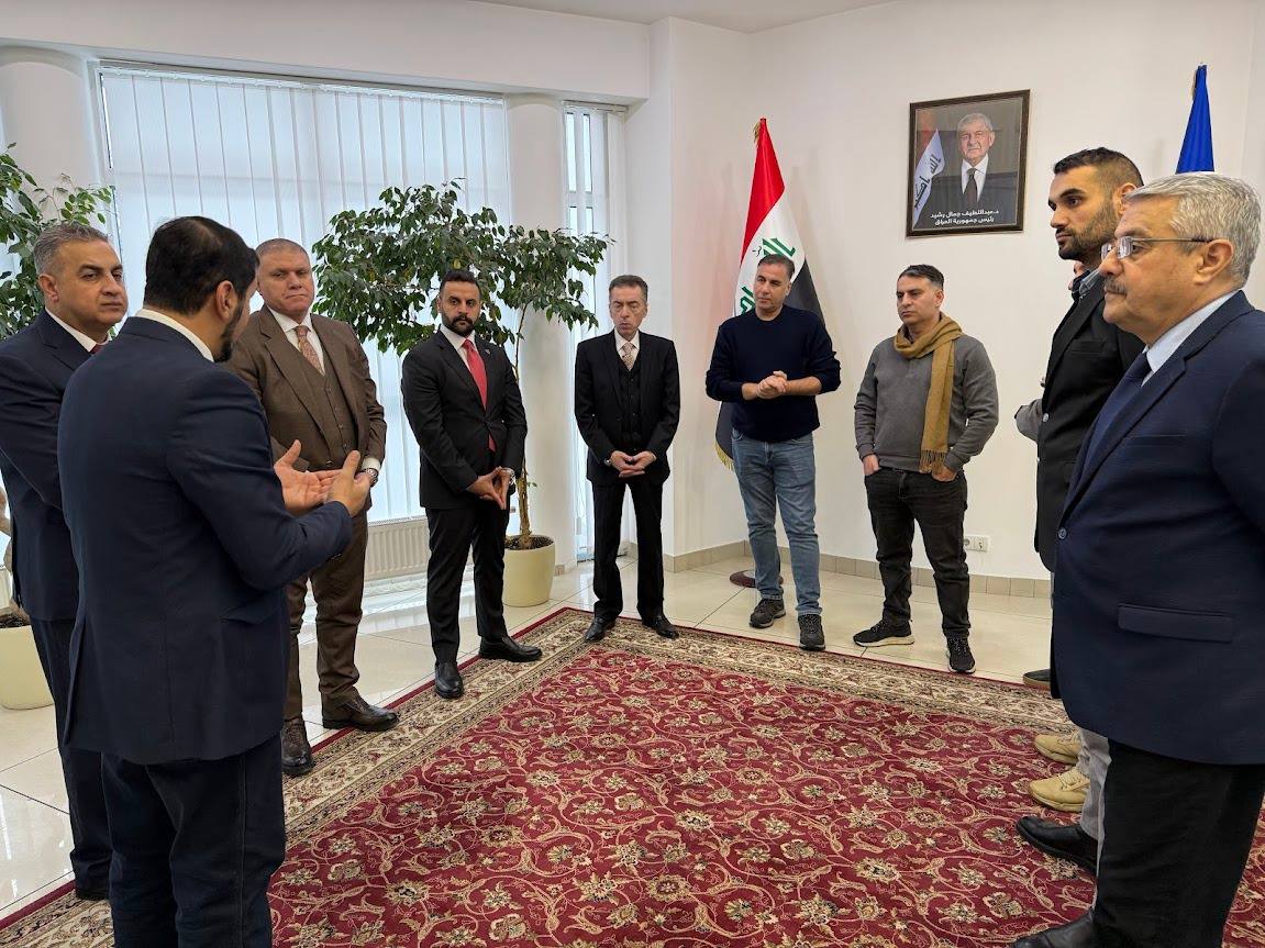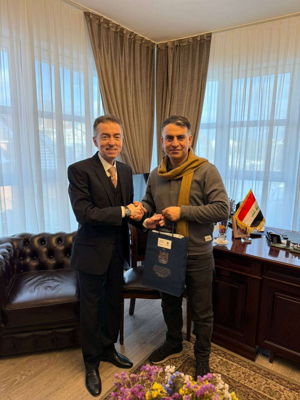 كييف/ أوكرانيا بالعربية/ في اطار نشاطات الدبلوماسية الشعبية للسفارة العراقية لدى أوكرانيا وحرصا على التواصل المتين بين البعثة الدبلوماسية العراقية والدبلوماسية الشعبية العربية، استقبل السيد القائم بالاعمال لسفارة جمهورية العراق في أوكرانيا/ وزير مفوض طارق عادل الشاهر في مكتبه بمبنى السفارة يوم الثلاثاء الموافق 30 كانون الاول/ديسمبر 2025 نخبة من الإعلاميين ومراسلي القنوات العربية في أوكرانيا، وحيث تضمن الحضور كل من: