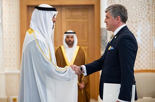 سفير أوكرانيا يقدّم نسخة من أوراق اعتماده لدى الإمارات