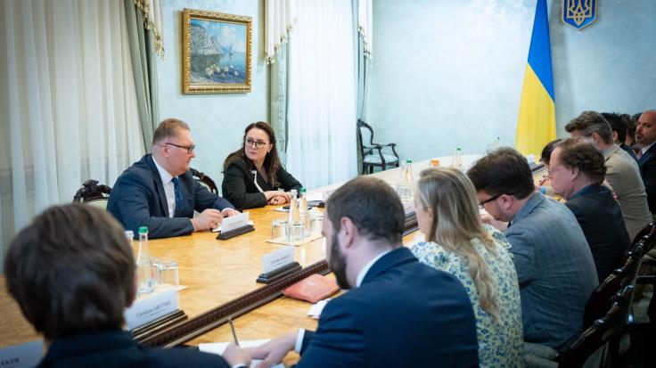 وأكدت للدبلوماسيين أن مشروع القانون، الذي وعد الرئيس فولوديمير زيلينسكي بتقديمه، لن "يزيل جميع الخلافات القائمة" فحسب، بل سيعزز أيضًا استقلالية البنية التحتية لمكافحة الفساد، مما يمنع "أي تأثير من العدو" وأي تدخل في عمل أجهزة إنفاذ القانون، ولا سيما المكتب الوطني لمكافحة الفساد، ومكتب المدعي العام المتخصص في مكافحة الفساد.