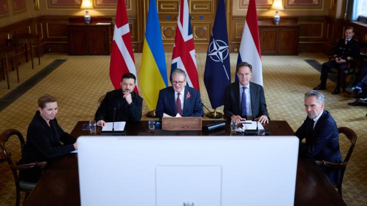 كييف/ أوكرانيا بالعربية/ شارك الرئيس الأوكراني فولوديمير زيلينسكي في اجتماع قادة تحالف الراغبين في لندن، الجمعة 24 تشرين الأول/ أكتوبر، برئاسة مشتركة من رئيس الوزراء البريطاني كير ستارمر والرئيس الفرنسي إيمانويل ماكرون (عبر الإنترنت).