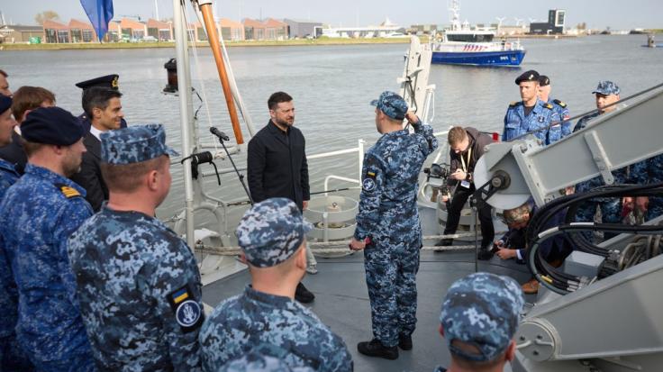 زيلينسكي يلتقي في هولندا متدربين أوكرانيين على متن كاسحة ألغام