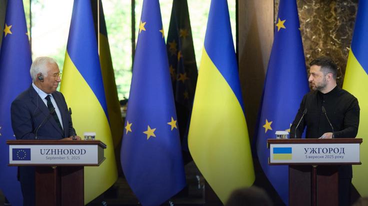 كييف/ أوكرانيا بالعربية/ التقى الرئيس الأوكراني فولوديمير زيلينسكي، الجمعة 5 أيلول/ سبتمبر، برئيس المجلس الأوروبي أنطونيو كوستا في مدينة أوجورود، للاتفاق على مواقف مشتركة بشأن الضمانات الأمنية، وعضوية أوكرانيا في الاتحاد الأوروبي، ومناقشة الخطوات المستقبلية.