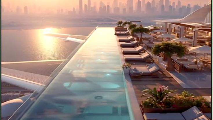 На вершине 580-метровой башни Emirates Air Hotel разместят настоящий самолет Airbus A380, внутри которого обустроят бар, три ресторана уровня Michelin и стеклянные площадки на крыльях, бассейн с панорамным видом и вертолетную площадку, даже номер класса «суперлюкс» на самом верху.