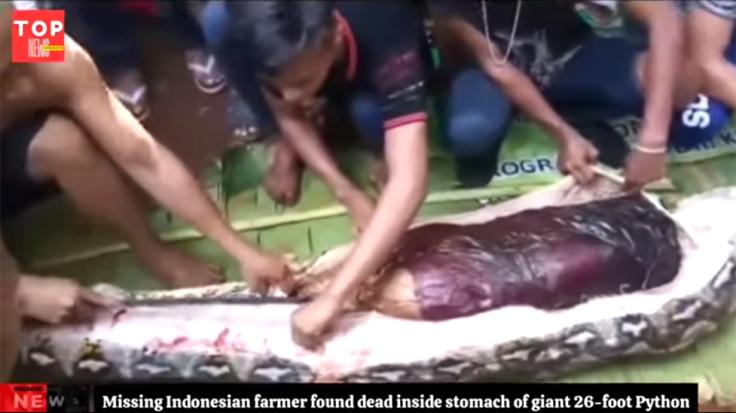 В индонезийской деревне Маджапахит питон длиной около 8 метров, проглотил местного фермера. Тело доставали односельчане.