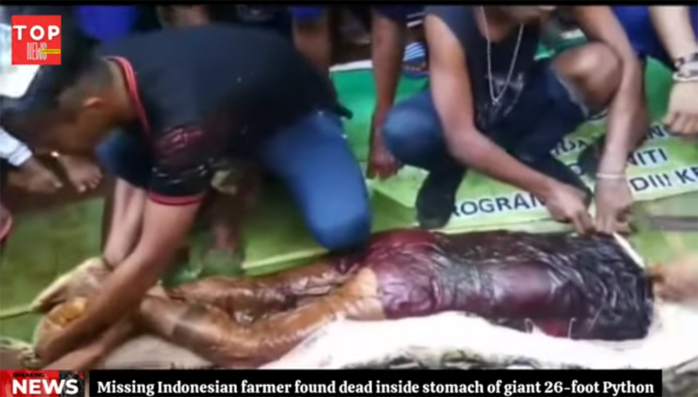 У індонезійському селі Маджапахіт пітон довжиною близько 8 метрів, проковтнув місцевого фермера. Тіло діставали односельчани.
