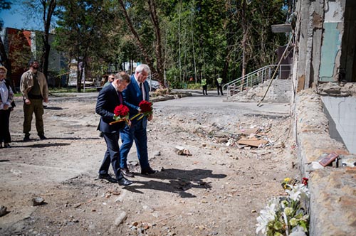 كما زارا موقع الغارة الروسية على مبنى سكني في حي سولومينسكي في كييف، وكرما الضحايا المدنيين الذين لقوا حتفهم في الهجوم.