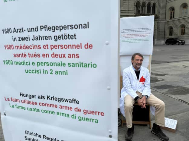 Швейцарские медики в понедельник, 8 сентября, начали голодовку перед зданием парламента в знак протеста против войны в секторе Газа, призывая Берн занять более критическую позицию по поводу действий Израиля в отношении палестинского анклава.