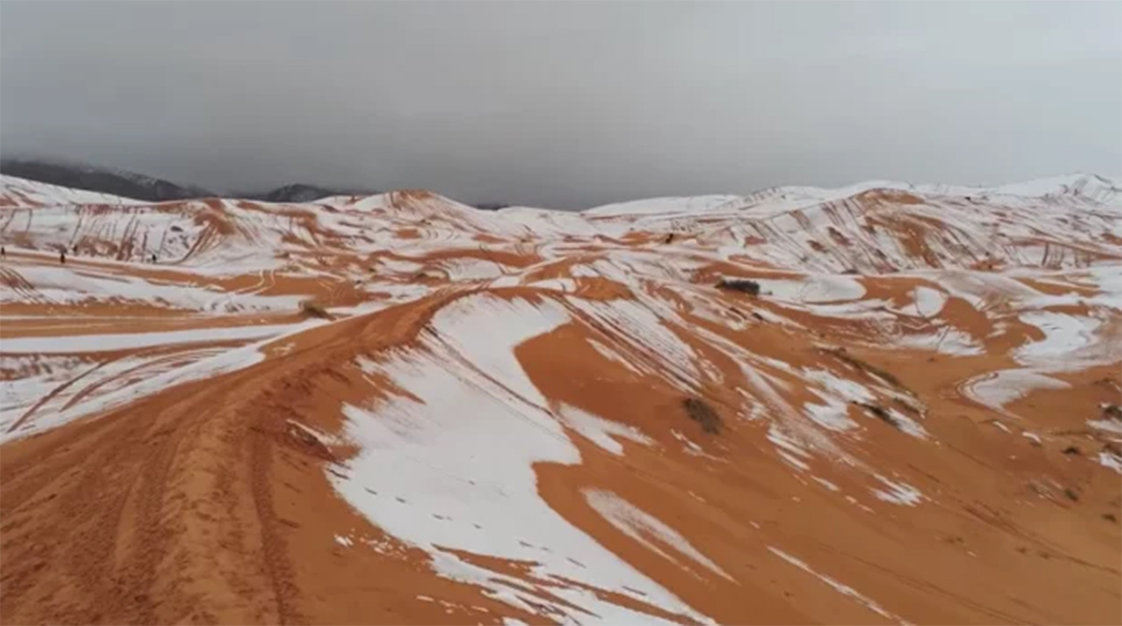 Зазвичай такий сніг тане дуже швидко, але контраст білих пластів на фоні помаранчевих дюн створює неймовірні кадри. Останніми роками подібні аномалії трапляються дещо частіше, що науковці пов'язують із загальними кліматичними змінами на планеті.